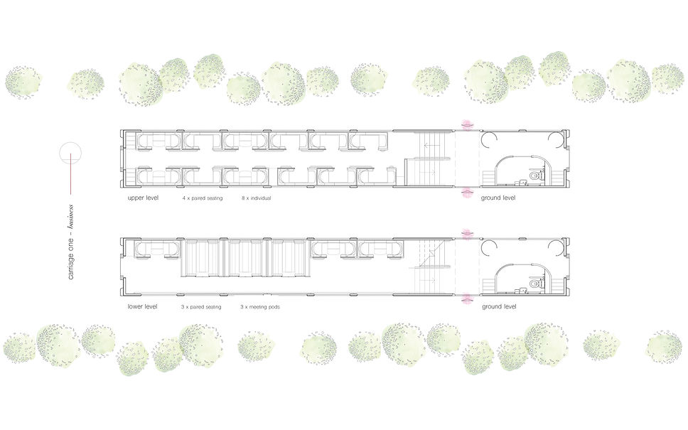 'The Trans Britannia': a railway carriage interior for the 21st Century, designed within Andreas Vogler's high-speed double decker train. Together, both elements of the design will be transforming the 393 mile journey between London King's Cross and Edinburgh Waverley.